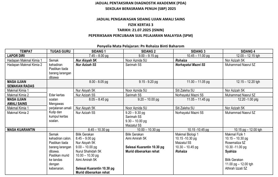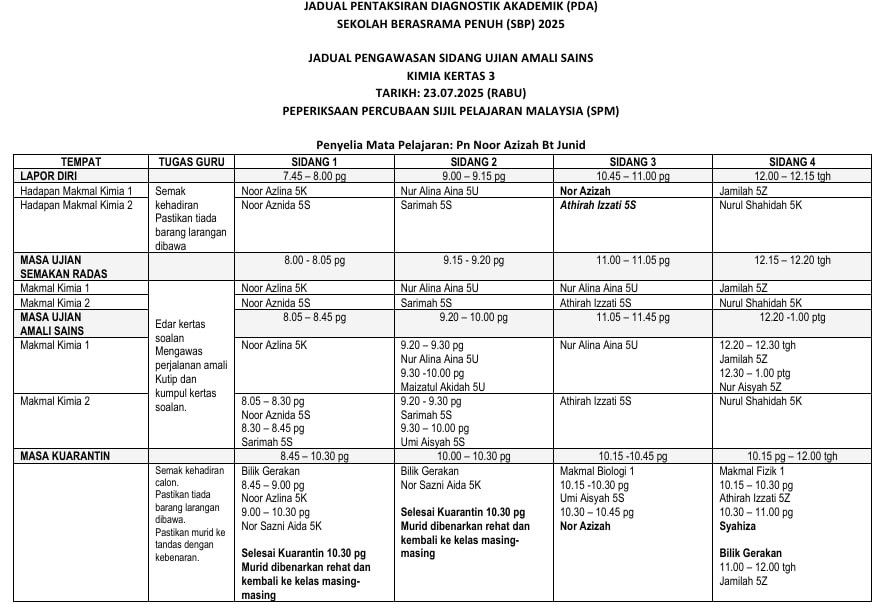 JADUAL WAKTU PENTAKSIRAN DIAGNOSTIK AKADEMIK